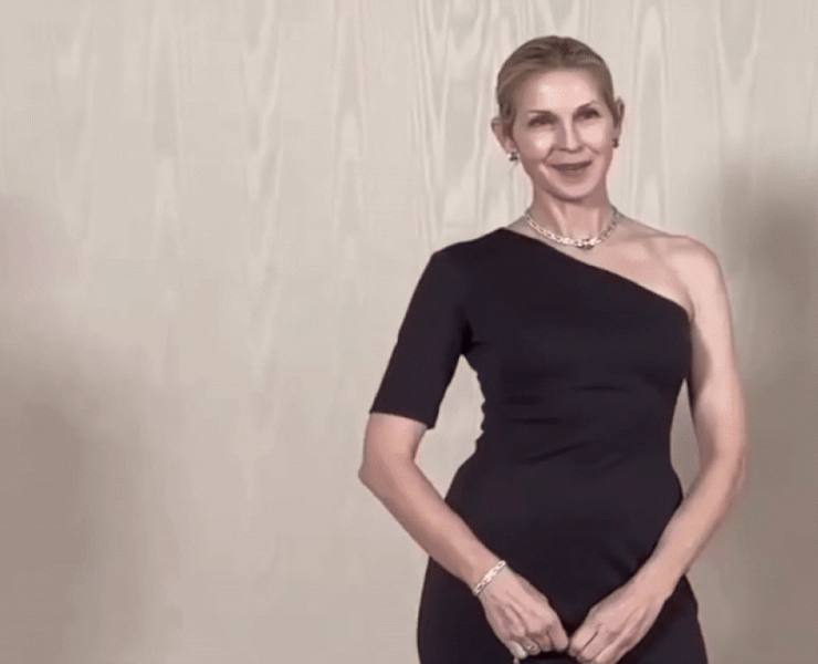 Носії: Келлі Резерфорд на званій вечері Bvlgari в сукні Amarice
